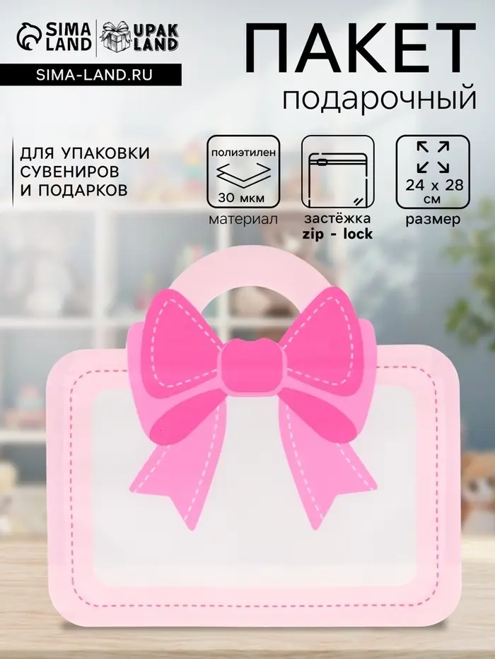 Пакет подарочный, с zip-lock застежкой «Сумка с бантом», розовый, 24×28 см