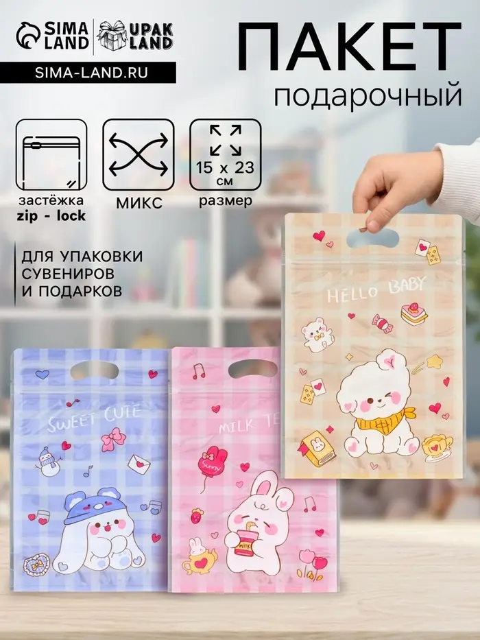 Пакет подарочный, с zip-lock застежкой, «Милые зверята», 15×23±1 см МИКС