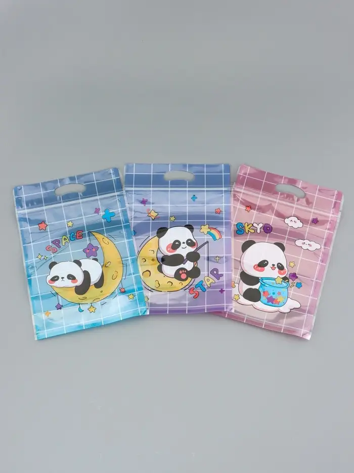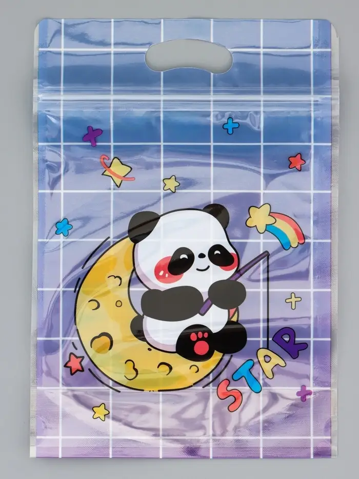 Космическое приключение с пандой. Набор пакетов «Панда на луне» с zip-lock застёжкой — это милые и практичные органайзеры в космическом стиле. Забавные рисунки панд, покоряющих вселенную, и надёжная застёжка помогают хранить детские коллекции, материалы для творчества или школьные мелочи.