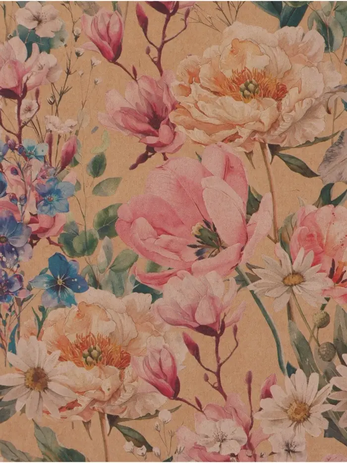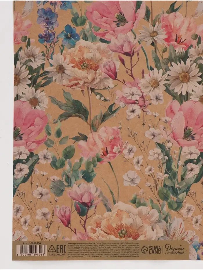 Бумага упаковочная крафт «Цветы», 70×100 см