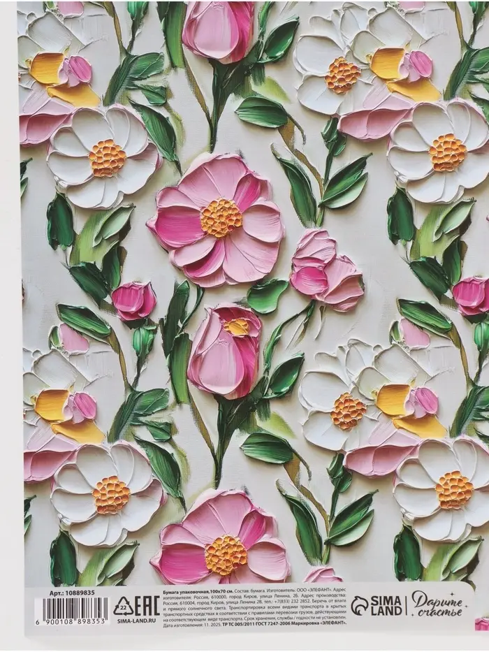 Бумага упаковочная глянцевая «Цветочная поляна», 70 × 100 см