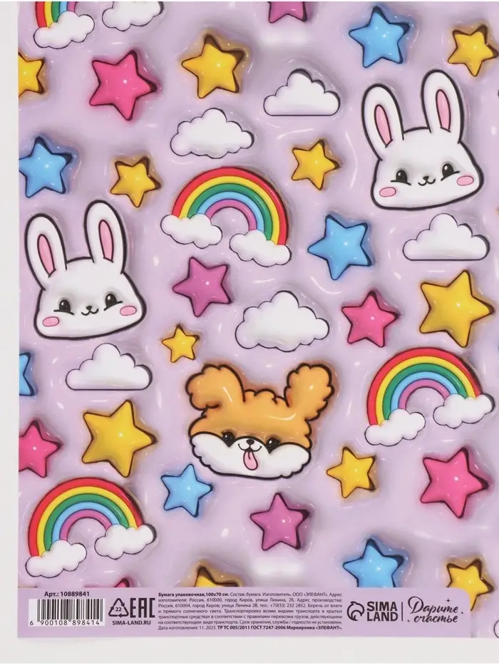 Бумага упаковочная глянцевая «Праздник», 70 × 100 см
