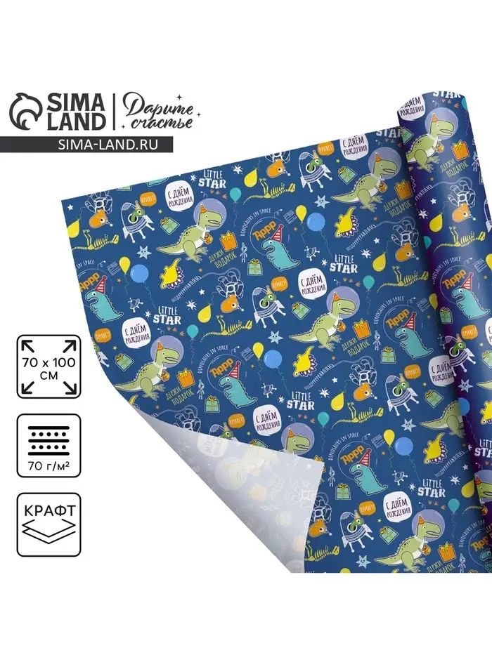Бумага упаковочная крафтовая «Динозаврик», 70 х 100 см