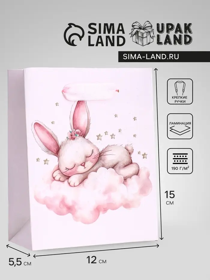 Пакет подарочный вертикальный «Зайка», S 12×15×5.5 см