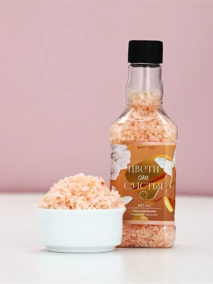 Соль для ванны во флаконе виски «Цвети от счастья», 300 гр, аромат нежный персик, Чистое счастье