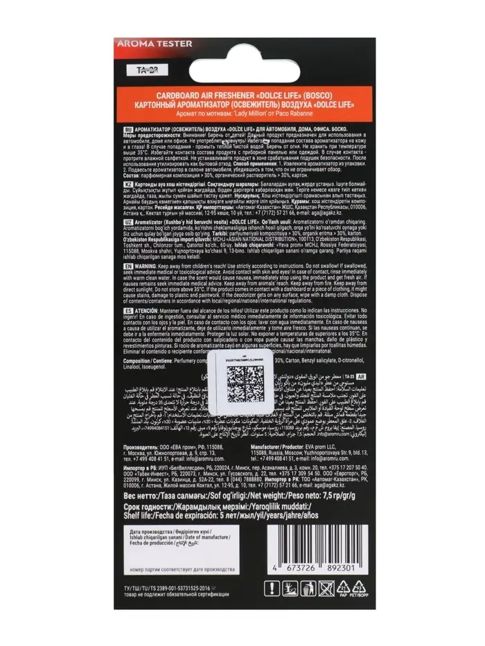 Ароматизатор картонный "Боско" по мотивам One Million