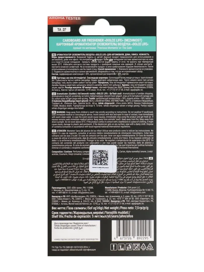 Ароматизатор картонный «Нежность», тёплый табачно-ванильный