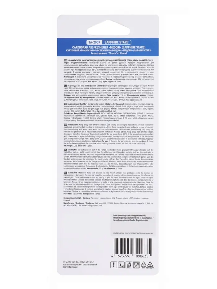 Ароматизатор картонный Chanel Chance Eau Splendide