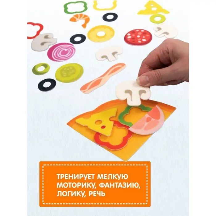 Набор из фетра включает в себя элементы, которые позволяют ребёнку развивать мелкую моторику и творческие способности.
