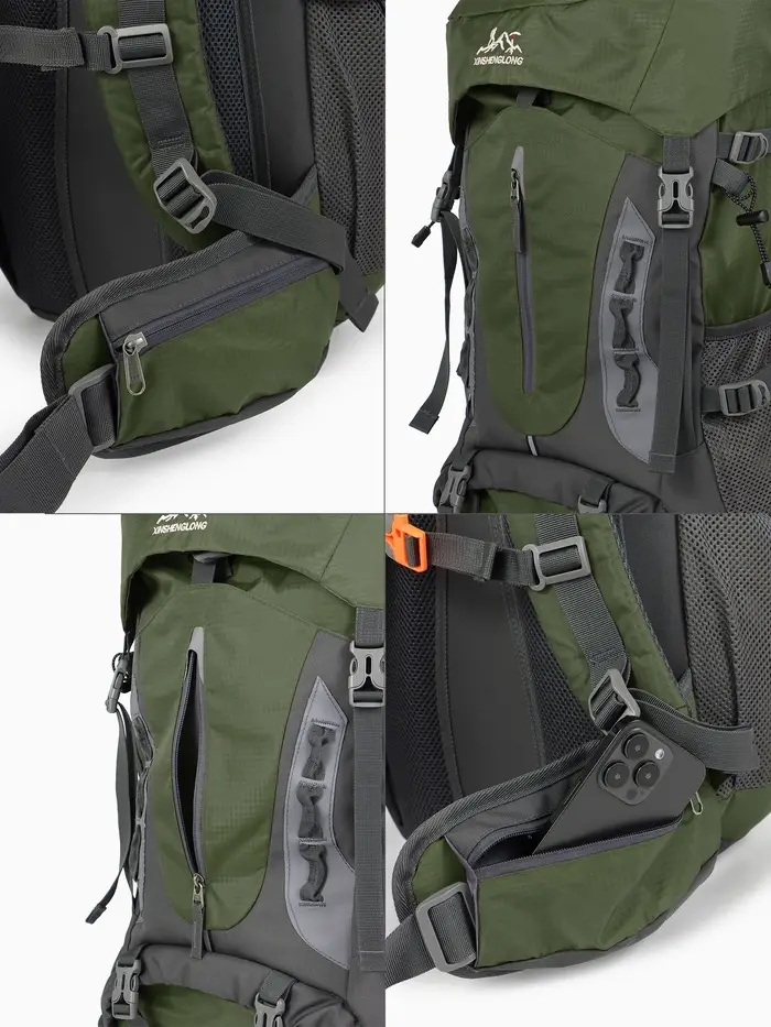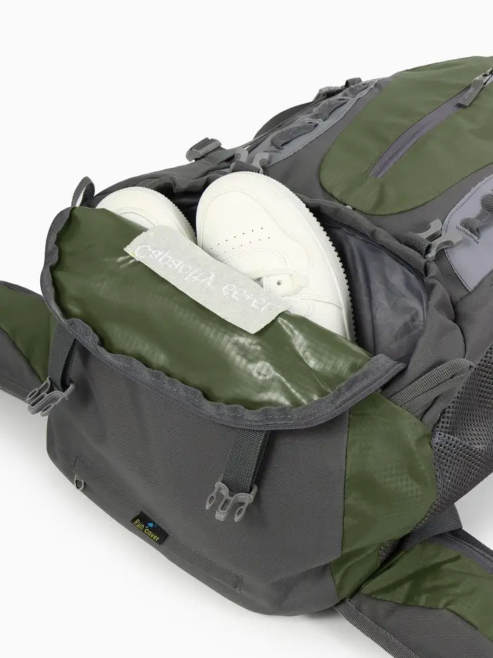 Рюкзак тур 65+5л, 30*20*53, отдел на шнурке, 5нар+2вн кармана, цвет хаки