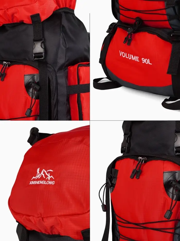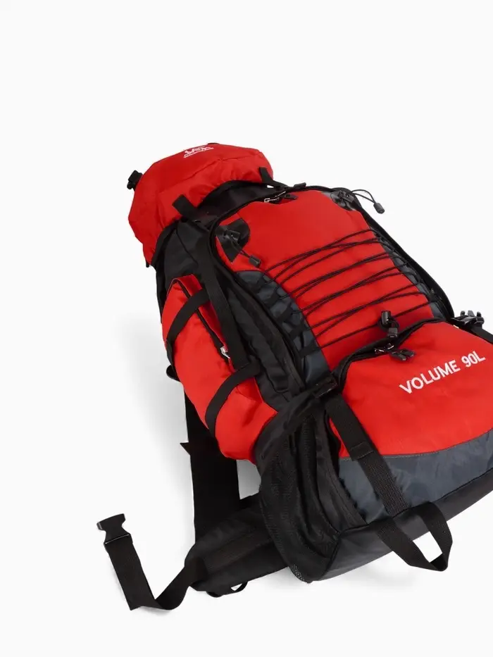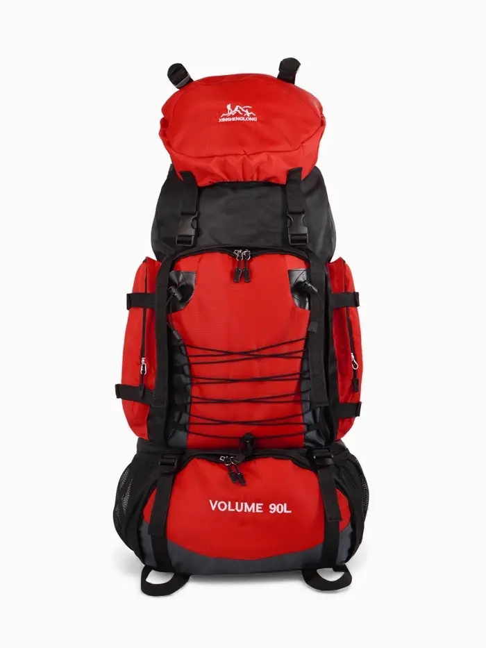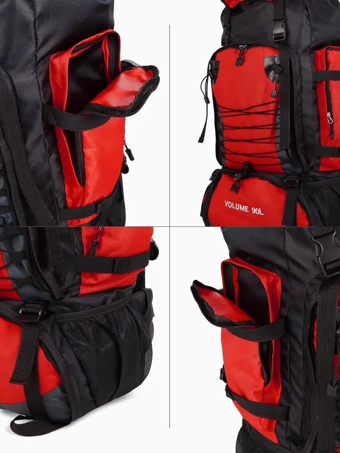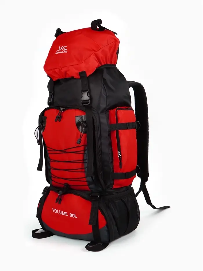 Рюкзак туристический, 90 литров, 6 наружных карманов, шнуровка, красный