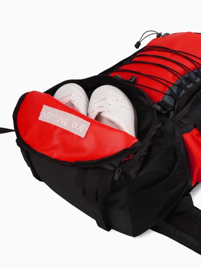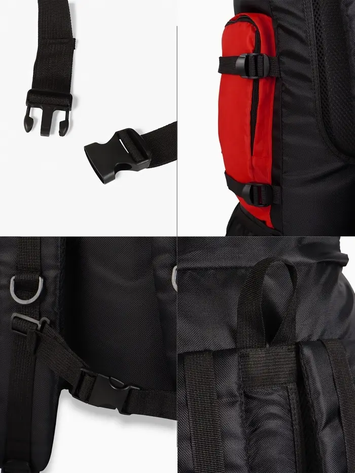 - Яркий красный цвет делает рюкзак хорошо заметным на фоне леса и в сумерках.