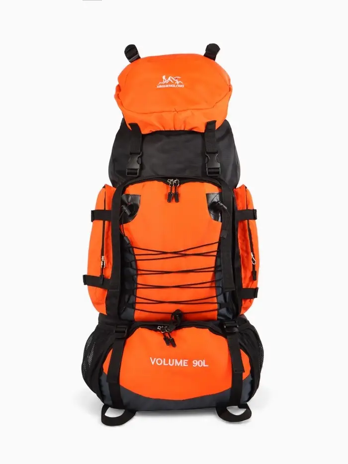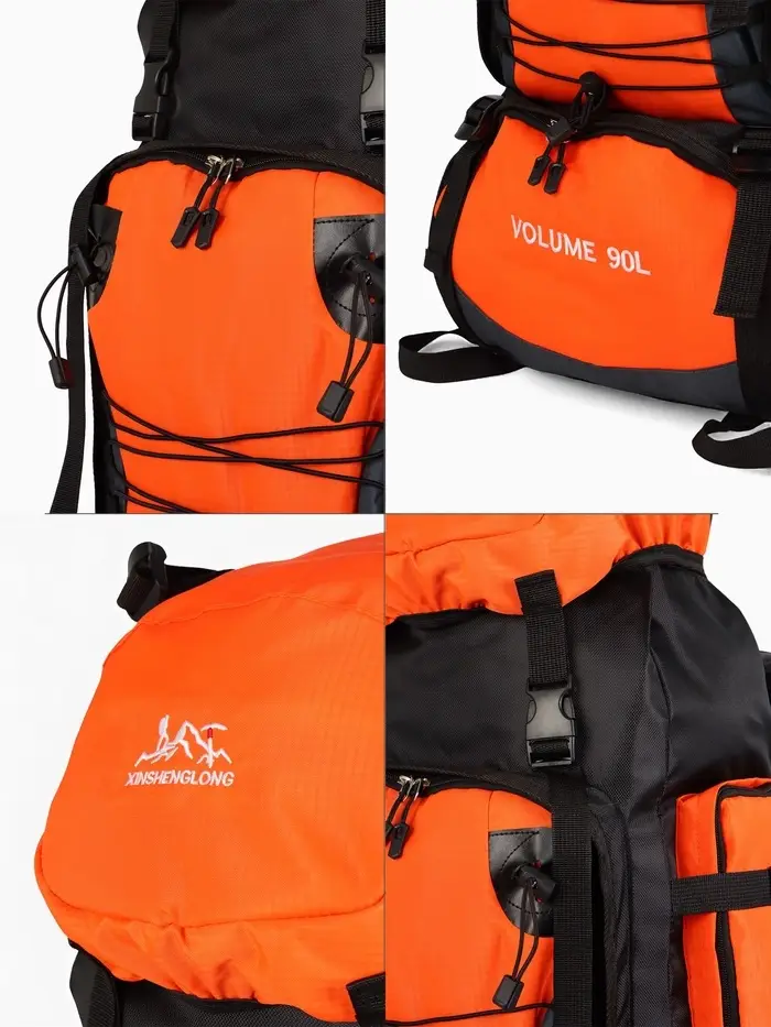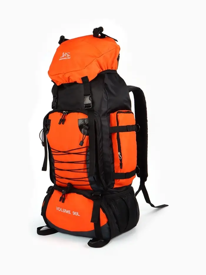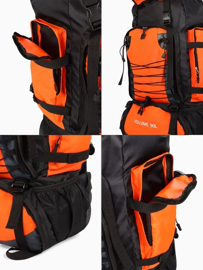 Рюкзак туристический, 90 литров, 6 наружных карманов, шнуровка, оранжевый