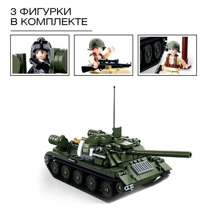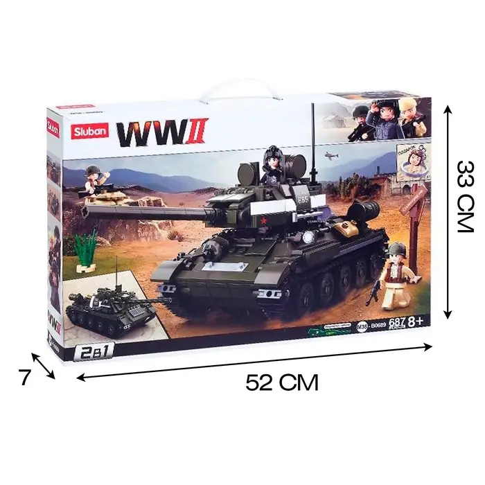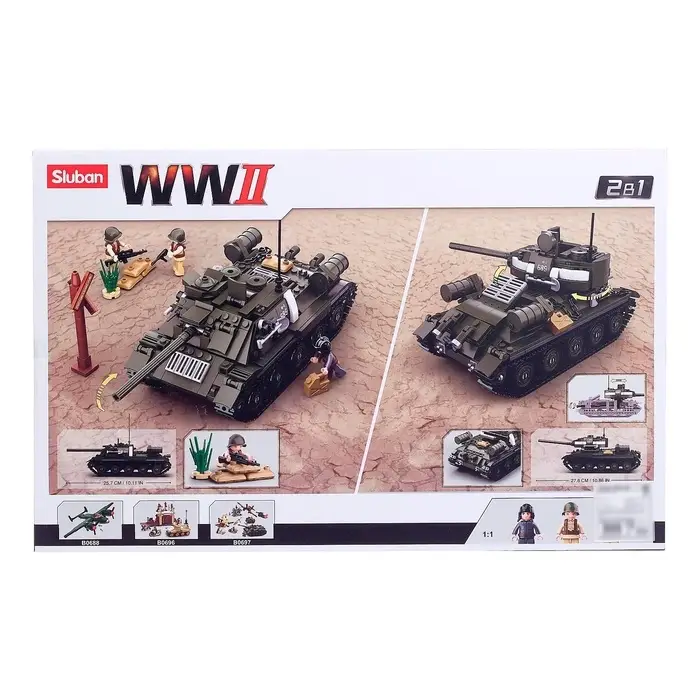 Конструктор Армия ВОВ Sluban «Боевой танк», 2 варианта сборки, 687 деталей
