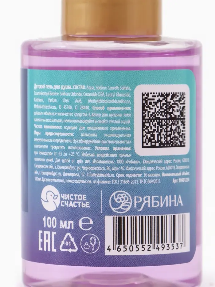 Детский гель для душа, аромат фруктовый лед, 100 мл, Снежная принцесса