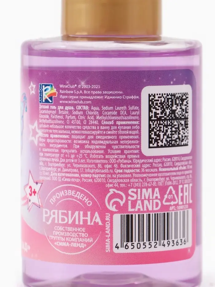 Гель для душа детский, аромат тропический лимонад, 100 мл, Винкс