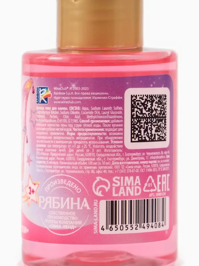 Пена для ванны детская, аромат клубничные конфетки, 100 мл, Винкс