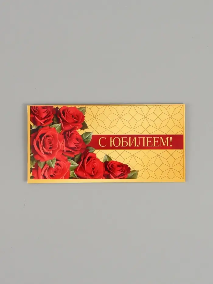 Конверт для денег «С юбилеем!», розы, двусторонний, 16,5 x 8 см