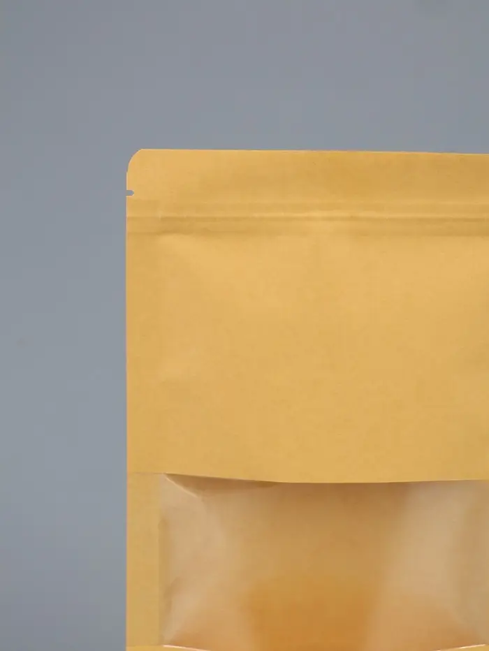 Пакет Zip-lock Крафт с плоским дном, прямоугольное окно, 10×20 см