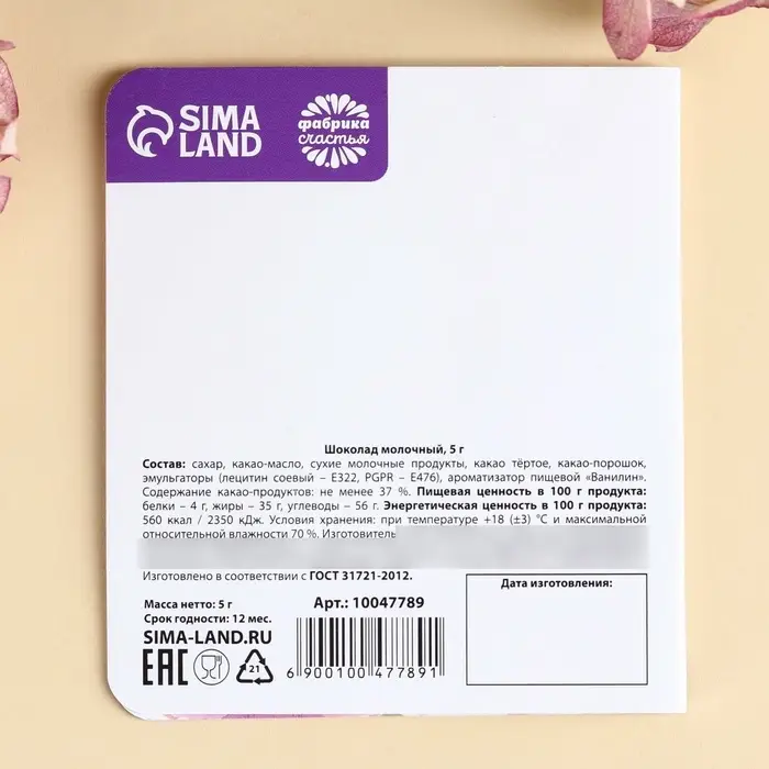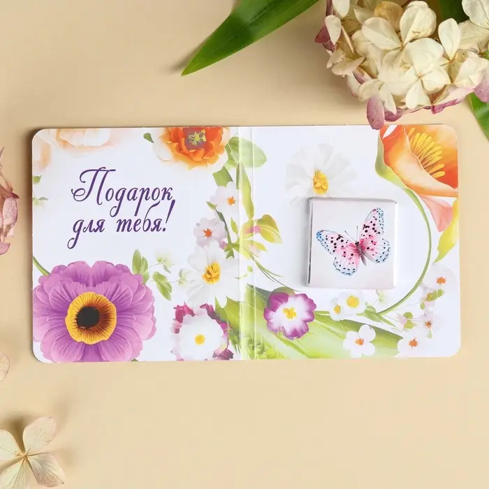 Шоколад молочный «Расцветай. 8 Марта», открытка, 5 г.