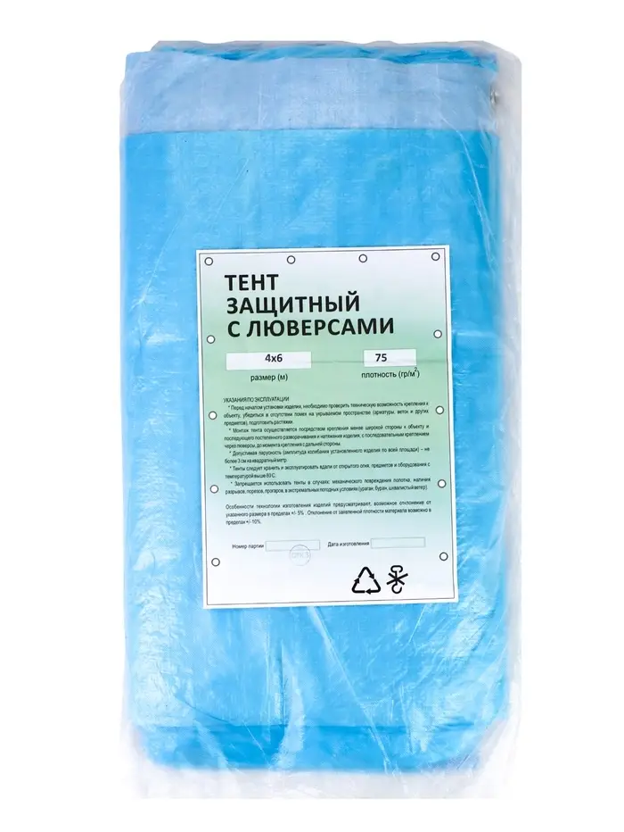 Тент защитный 75г/м2, УФ, 4х6м, тарпаулин, голубой