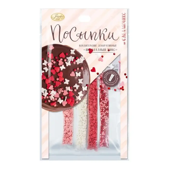 Область применения: декоративные кондитерские посыпки наносят на поверхность готовых изделий (тортов, пирожных, кексов, рулетов, мороженого, шоколадной глазури, сахарной помадки, сдобы и бубликов и других) для придания им красивого внешнего вида.