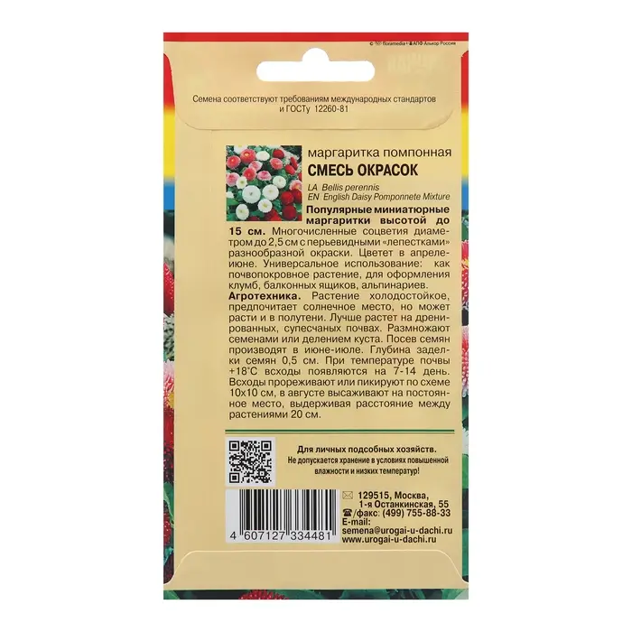 Семена Маргаритка Помпонная, смесь сортов Дв Ц/П 0,05г