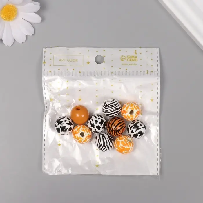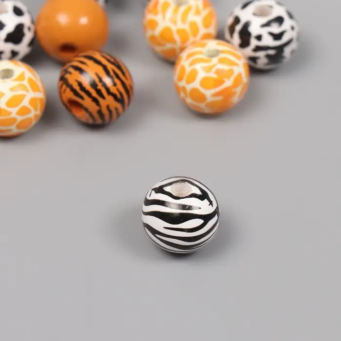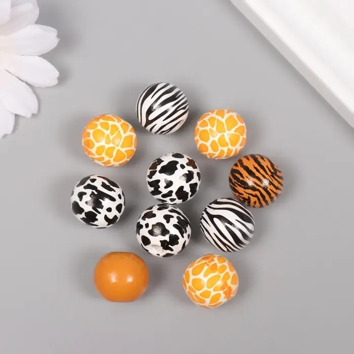 Бусины для творчества дерево "Звериный принт" набор 10 шт 1,6х1,6х1,6 см