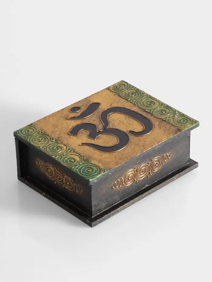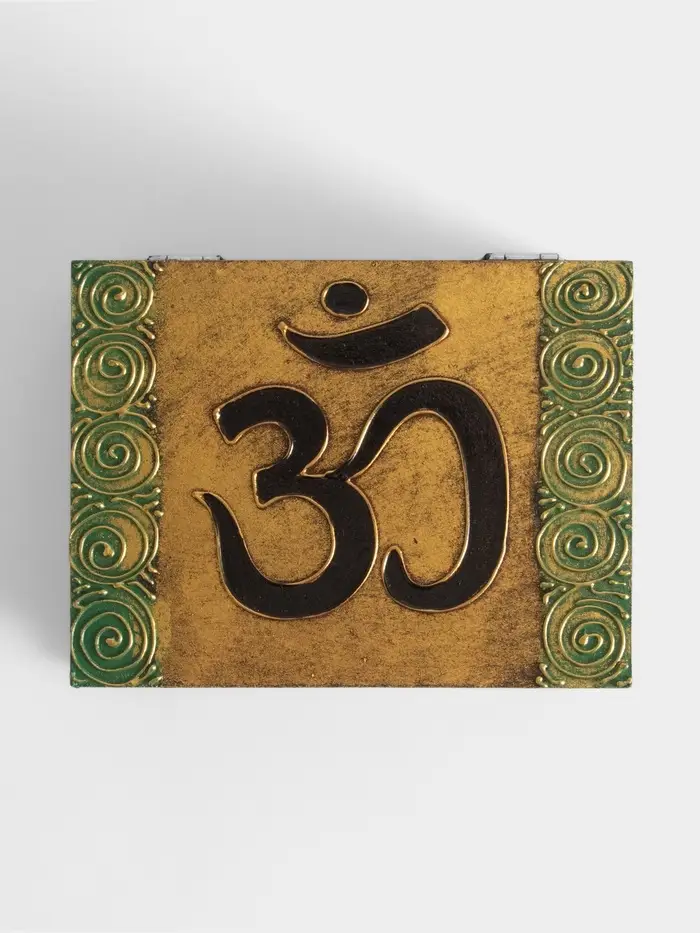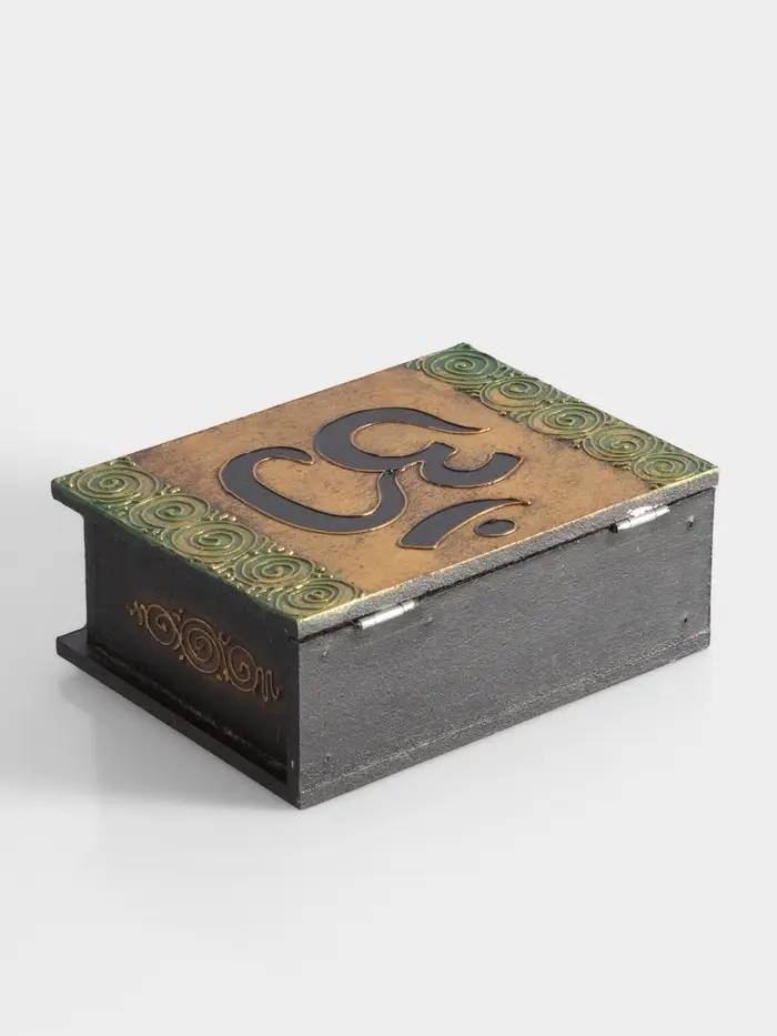 Шкатулка «Ом» — прямоугольная коробочка с символикой фэншуй для хранения украшений и личных талисманов. Её разноцветное оформление и знак «Ом» на крышке создают атмосферу внутреннего баланса, превращая простое хранение в ритуал заботы о себе. Без лака, без глянца — только матовая древесная текстура и намёк на духовную гармонию.