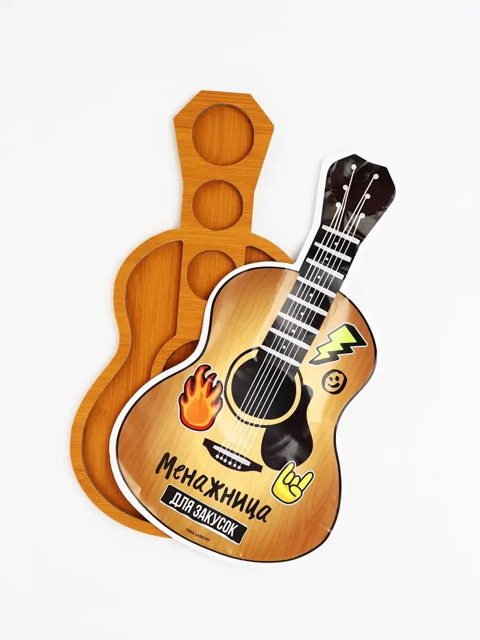 Менажница «Для закусок» — это не просто посуда, а лёгкий намёк на настроение вечера. Её силуэт повторяет музыкальный инструмент, корпус из ДСП имитирует тёплую текстуру дерева, а яркая крышка добавляет игривости без излишеств. В ней 6 секций — потому что иногда идея не требует усложнений: просто вино, закуска и компания, готовая к разговору без спешки.