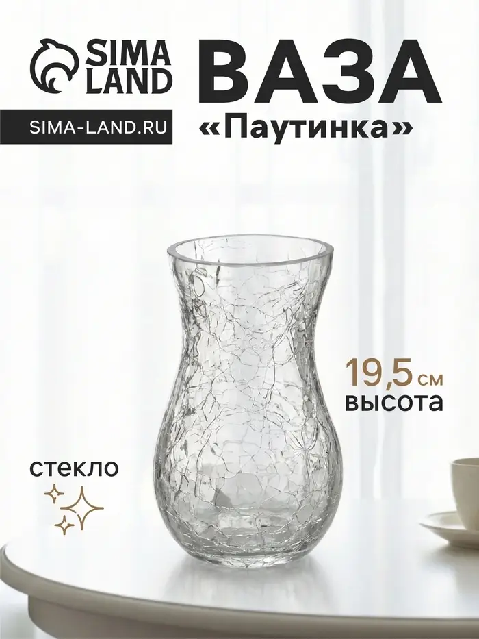 Ваза для цветов «Паутинка», грация, 19.5×10.5 см, стекло, прозрачная