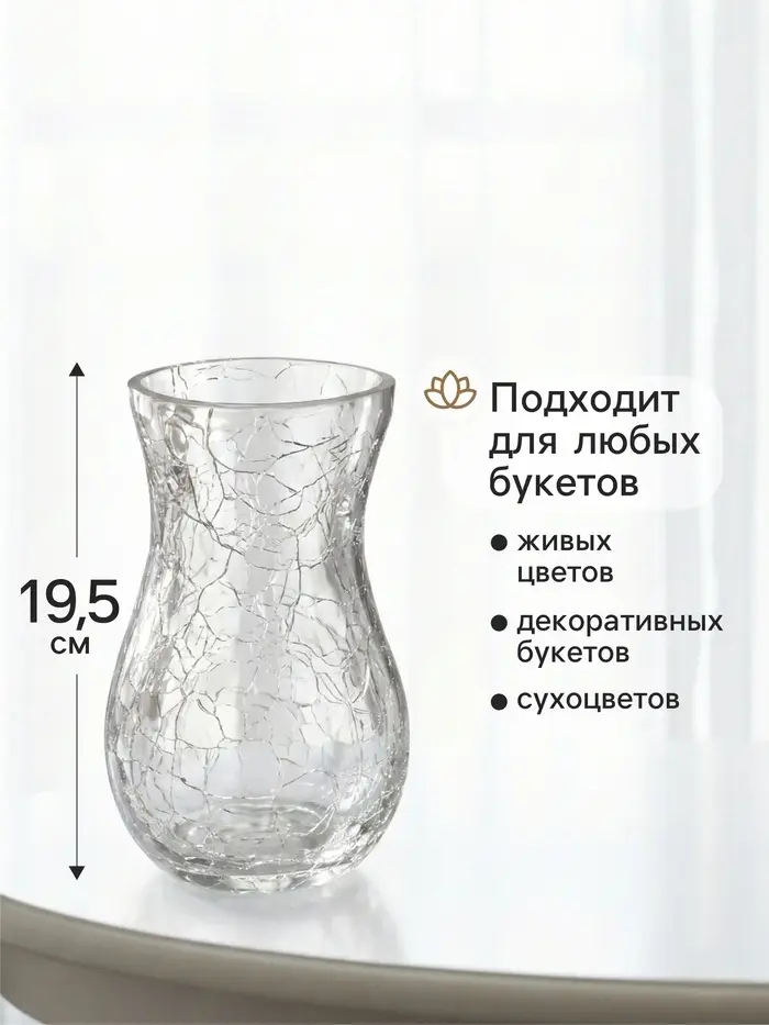 - Стабильность и форма: При кажущейся хрупкости, ваза обладает устойчивым дном и продуманными пропорциями (19,5 см в высоту). Она надёжно держит небольшой или средний букет, не переворачиваясь.