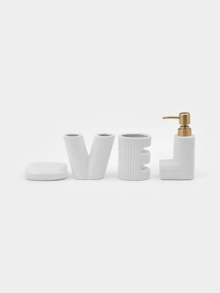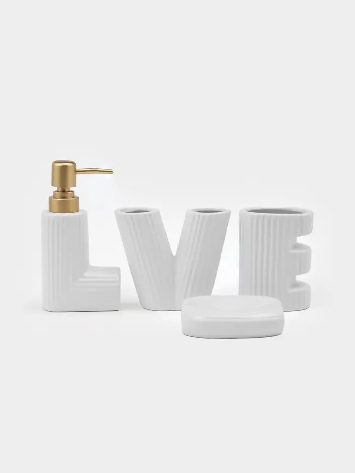 Набор для ванной Love, 4 предмета, дозатор для мыла, 2 стакана, мыльница, 200 мл, керамика, белый