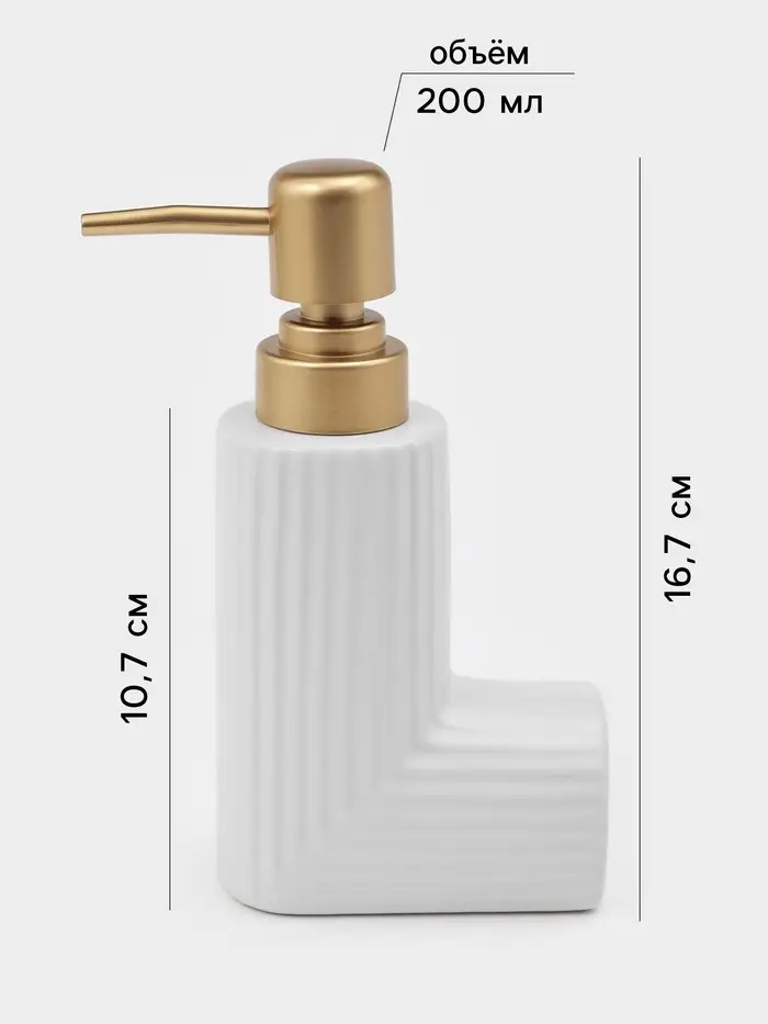 - Дозатор для жидкого мыла объёмом 200 мл с плавным нажимным механизмом.