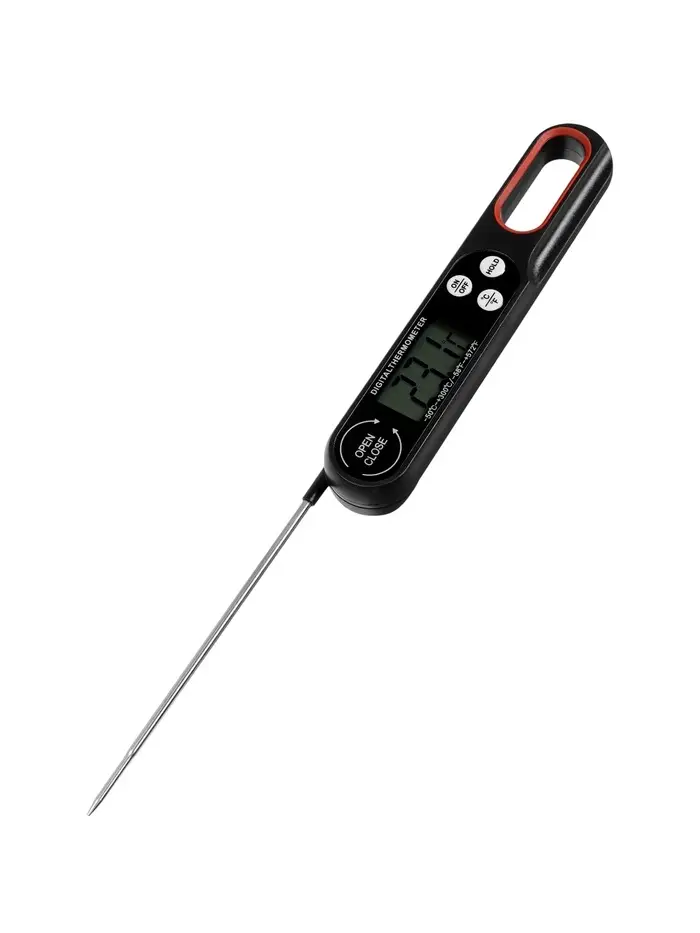 Термометр для пищи электронный, со складным щупом, цвет черный