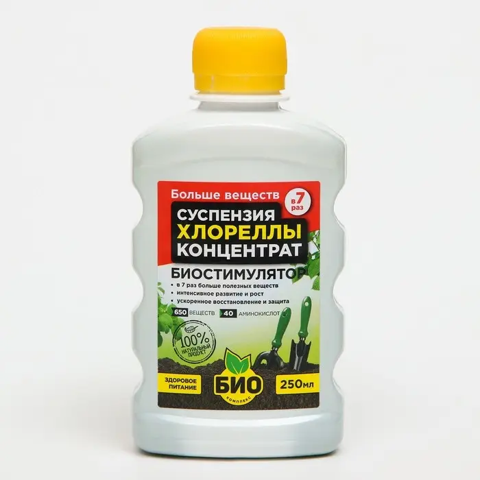 Суспензия Хлореллы – 100% органический высокоэффективный природный биостимулятор роста, ускоряющий корнеобразование, развитие и цветение; усиливает иммунитет растений, антистрессовую устойчивость при засухе, пересадке; восстанавливает увядающие и засушливые растения; обогащает почву, стимулирует рост почвенных микроорганизмов, предотвращает растрескивание почвы, сокращает потребность в удобрениях и воде; входящий в состав природный антибиотик уничтожает патогенные микроорганизмы.