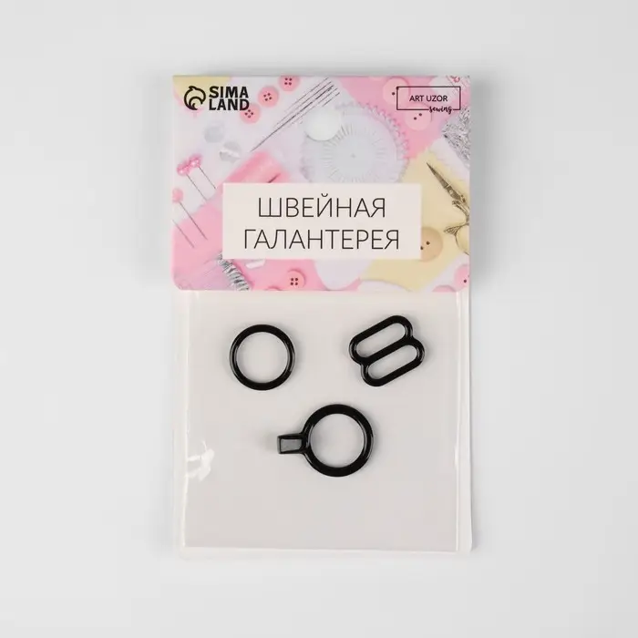 Набор металлической фурнитуры для галстука-бабочки: кольцо, крючок, регулятор 1 см, цвет чёрный