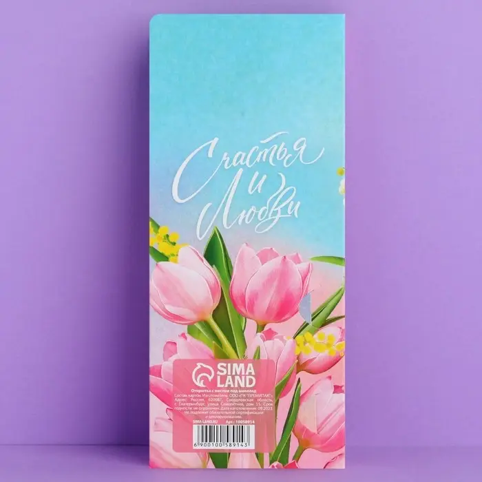 Открытка с местом под шоколадку, станет прекрасным подарком к празднику. Яркий дизайн, удобный формат и приятные эмоции обеспечены своему получателю.