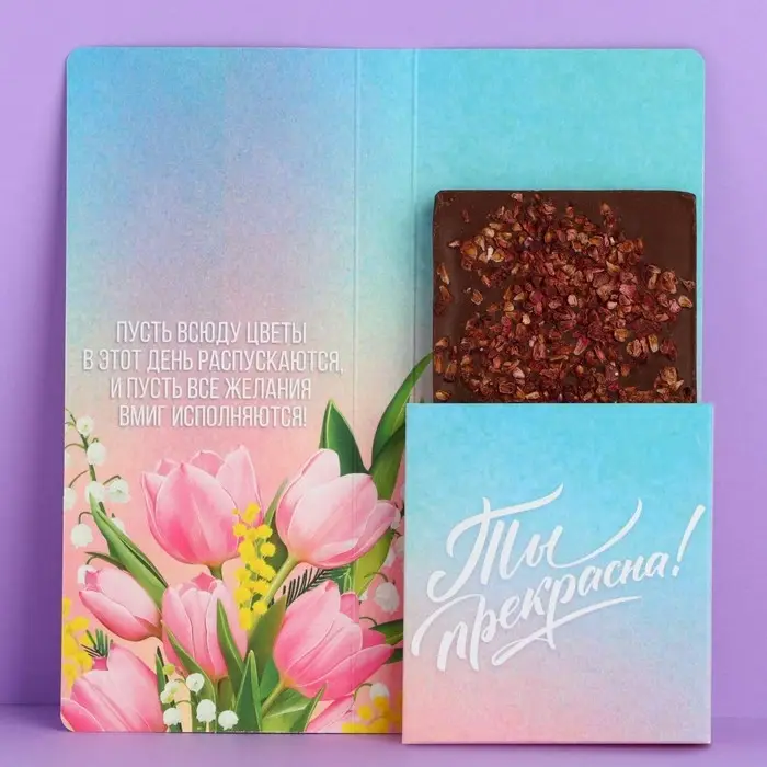 Открытка с местом под шоколадку «Прекрасной весны»