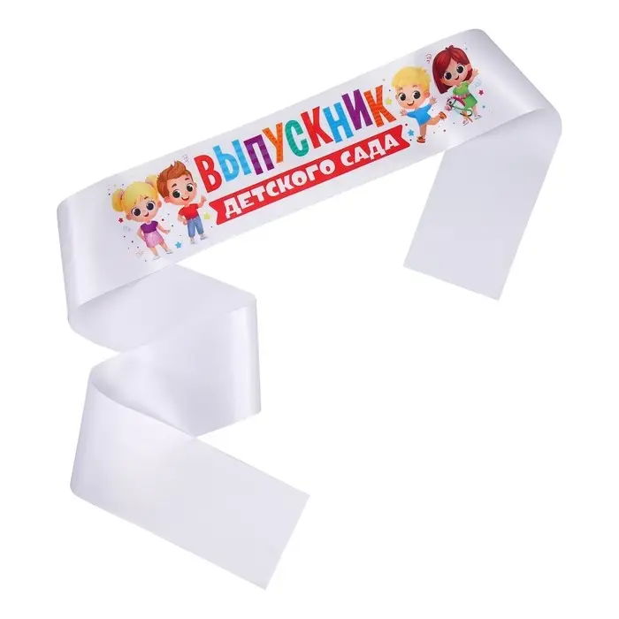 Качественную печать и яркий дизайн ленточки оценят выпускники и родители. Выпускные атласные ленты прекрасно сочетаются с детской одеждой любых оттенков и фасонов. Лента найдет свое применение на выпускном в детском саду,при вручении дипломов, грамот, медалей, на Дне учителя, награждении, на фотосессии, выступлении, линейке. Это лучший подарок на праздник будущим первоклашкам, выпускникам и выпускницам дошкольных учреждений, маленьким детям. Также нарядная ленточка пригодится во время выступления малышей перед любимыми учителями и дошколятами на прощальных утренниках, воспитателями младших классов. Края изделия тщательно обработаны и не цепляют одежду. Рекомендовано гладить при деликатном режиме с изнаночной стороны.