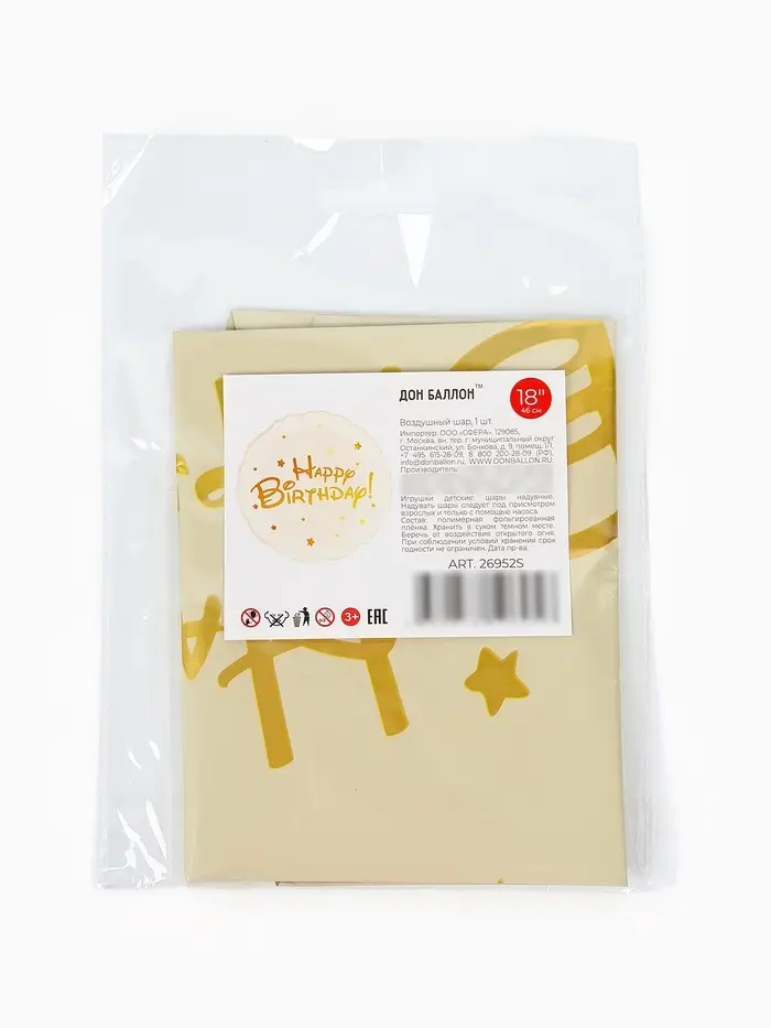 Воздушный шар фольгированный 18" круг "Happy Birthday (золотые звезды)" в инд.уп.