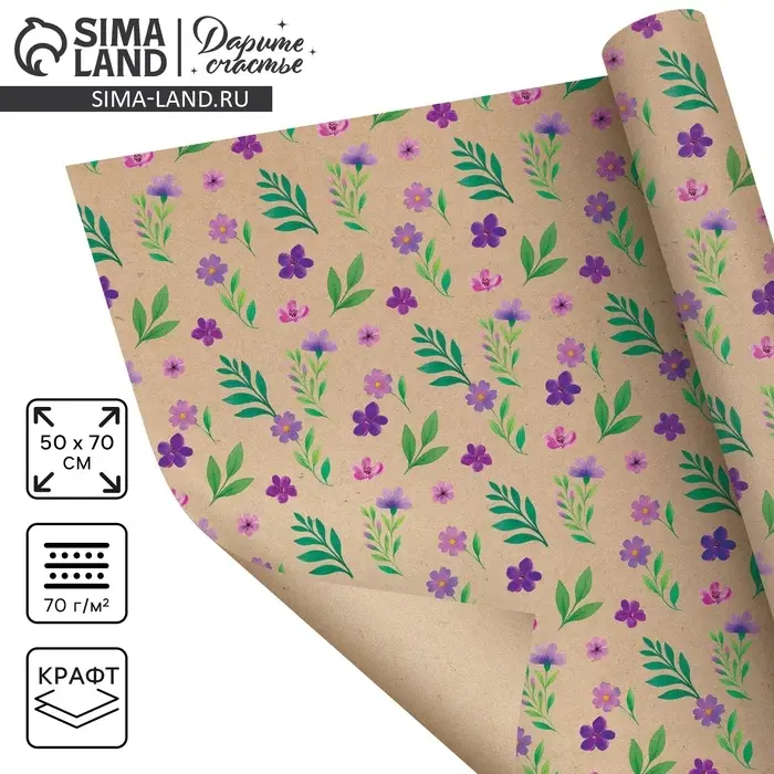 Бумага упаковочная крафтовая «Сиреневые цветы», 50 × 70 см