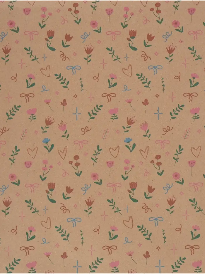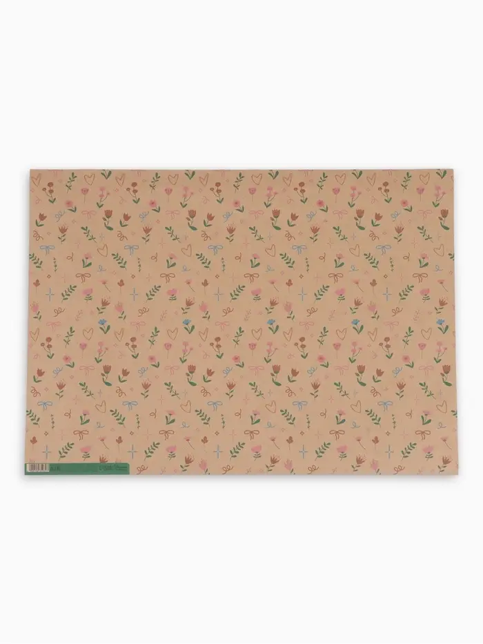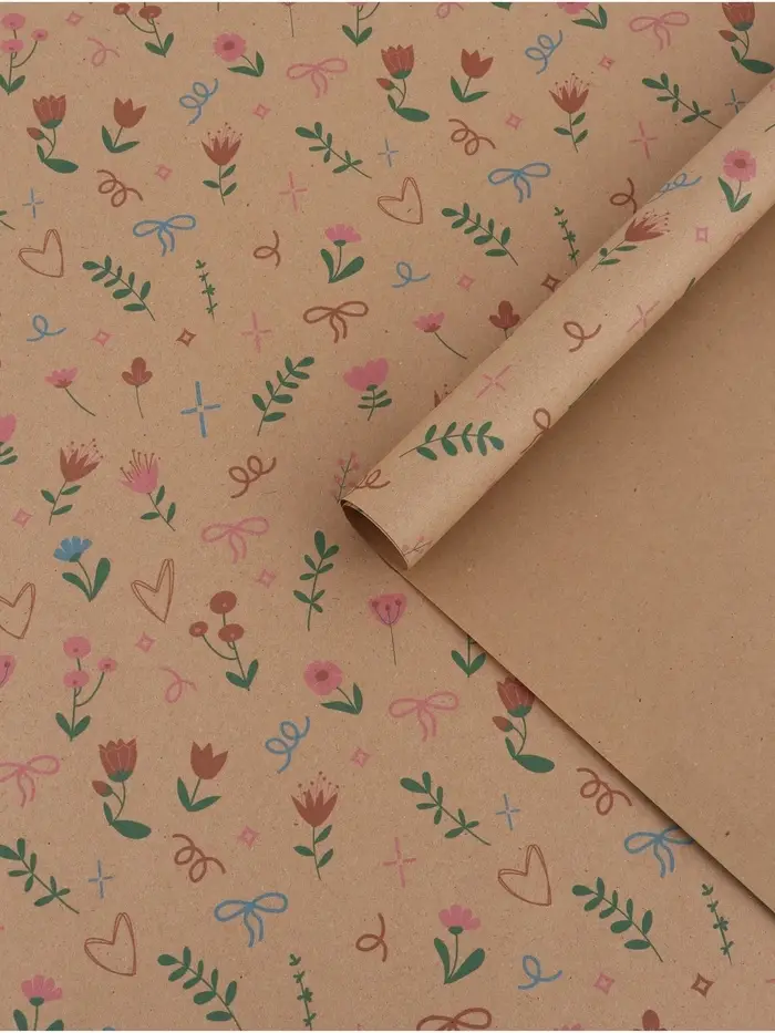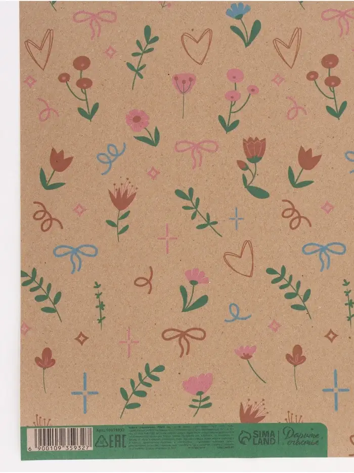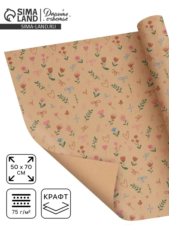 Бумага упаковочная крафт «Векторные цветы», 50×70 см