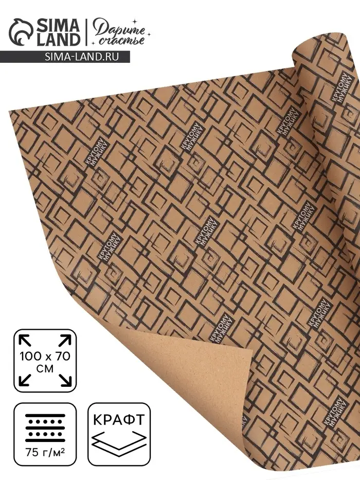 Бумага упаковочная крафт «Крутой мужик», 70×100 см