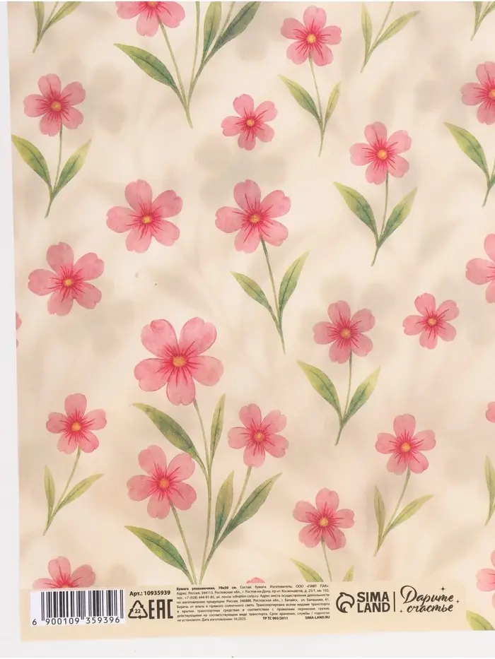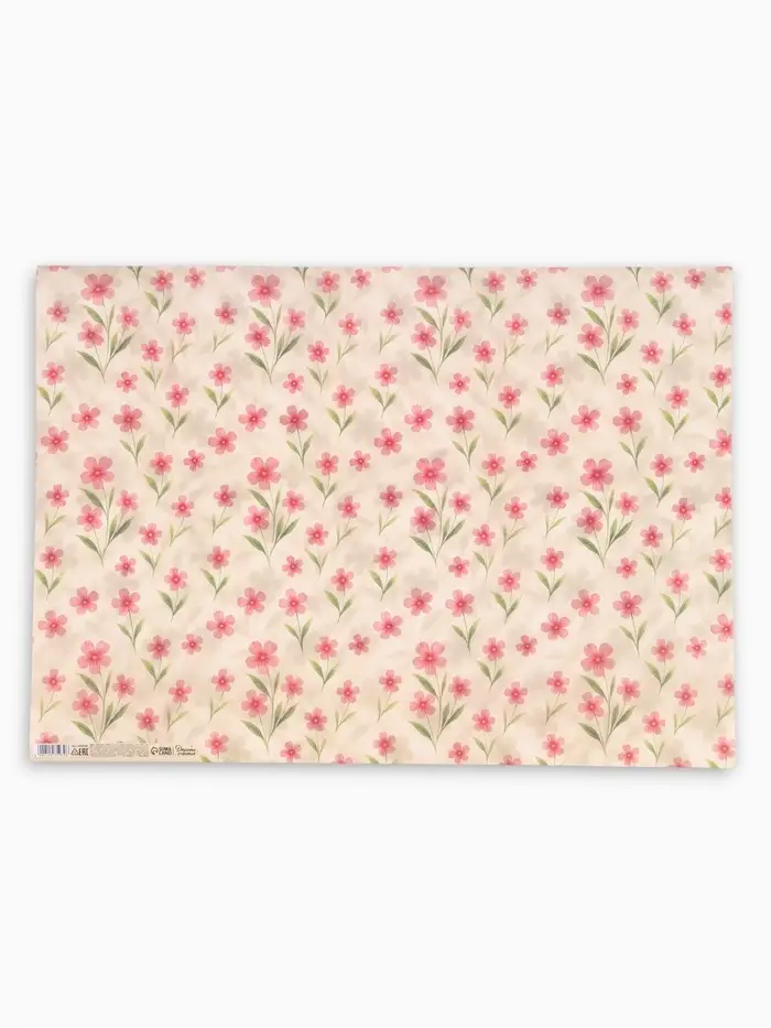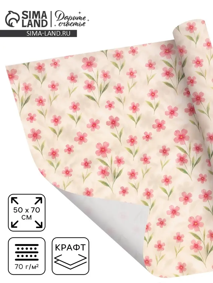 Бумага упаковочная крафт «Розовые цветы», 50×70 см