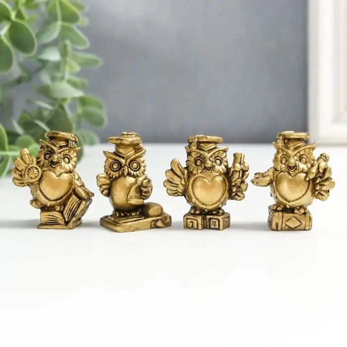 Сувенир полистоун под бронзу "Учёные совушки" набор 4 шт 3,8х1,5х3 см