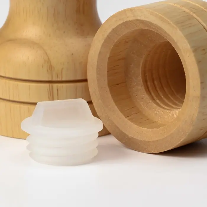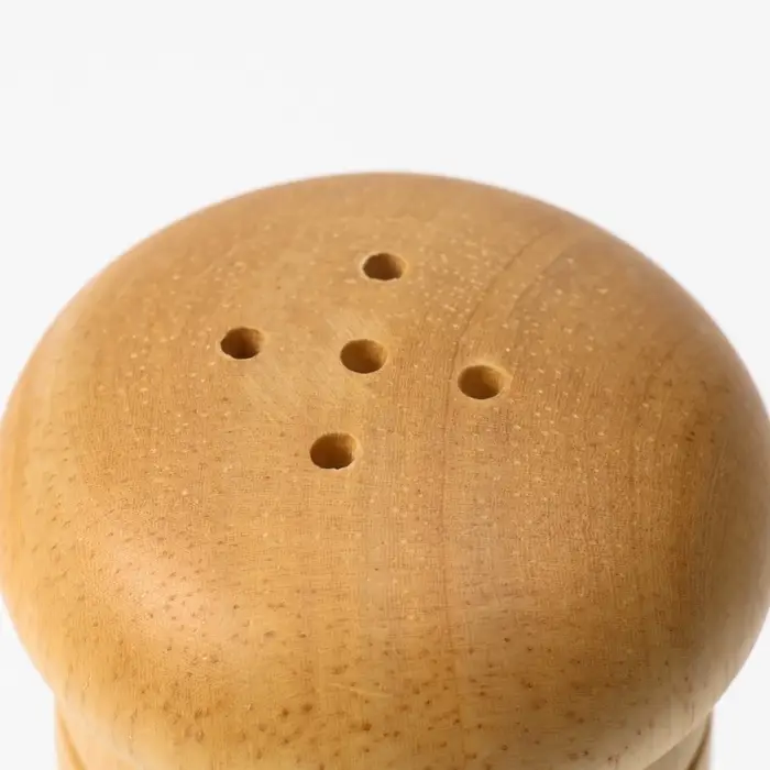 Насыпьте крупную соль в солонку, а перец горошком — в мельницу. Вращайте верхнюю часть мельницы для помола прямо над тарелкой. Дерево не нагревается от рук и не скользит на столе. Фигурная форма удобно лежит в ладони даже у ребёнка. После использования протрите набор влажной тряпкой и высушите — дерево не любит длительного контакта с водой.