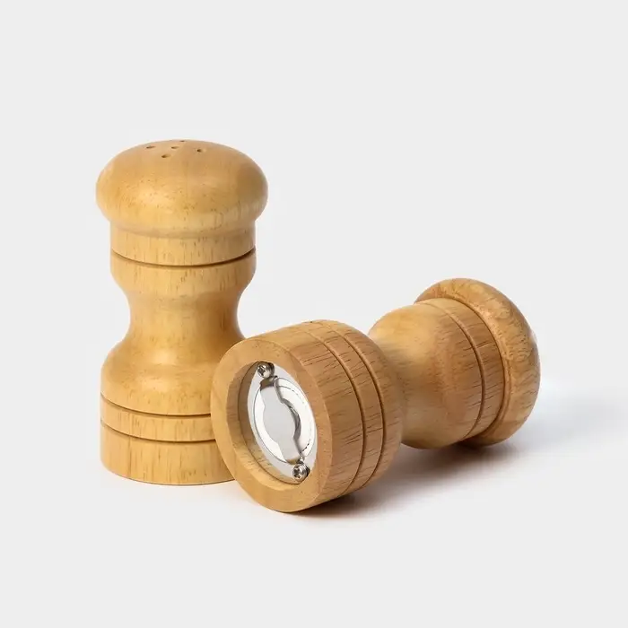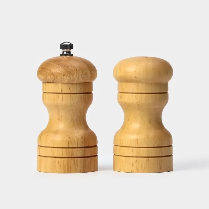 Ключевые запросы: набор для специй деревянный 2 предмета, мельница и солонка 50 мл, фигурная солонка из дерева, подарок для кухни бежевый коричневый, ручной помол перца.