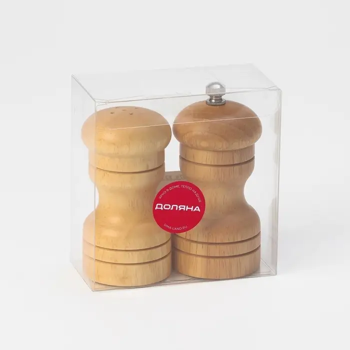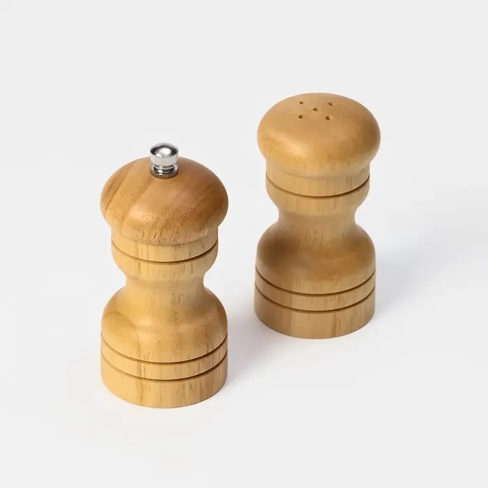 - В наборе 2 предмета — мельница для перца и солонка для соли.