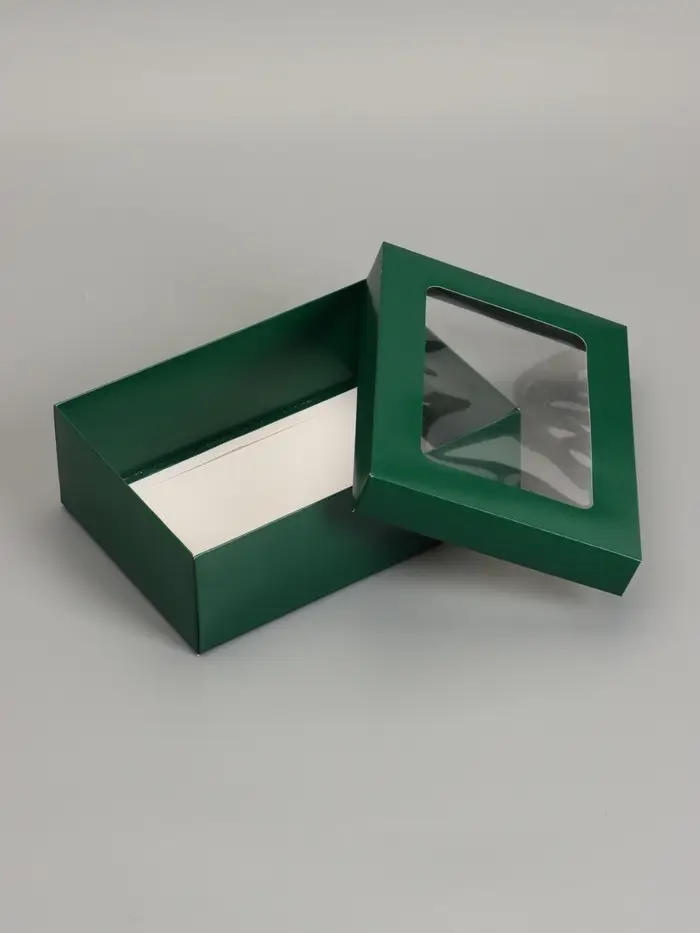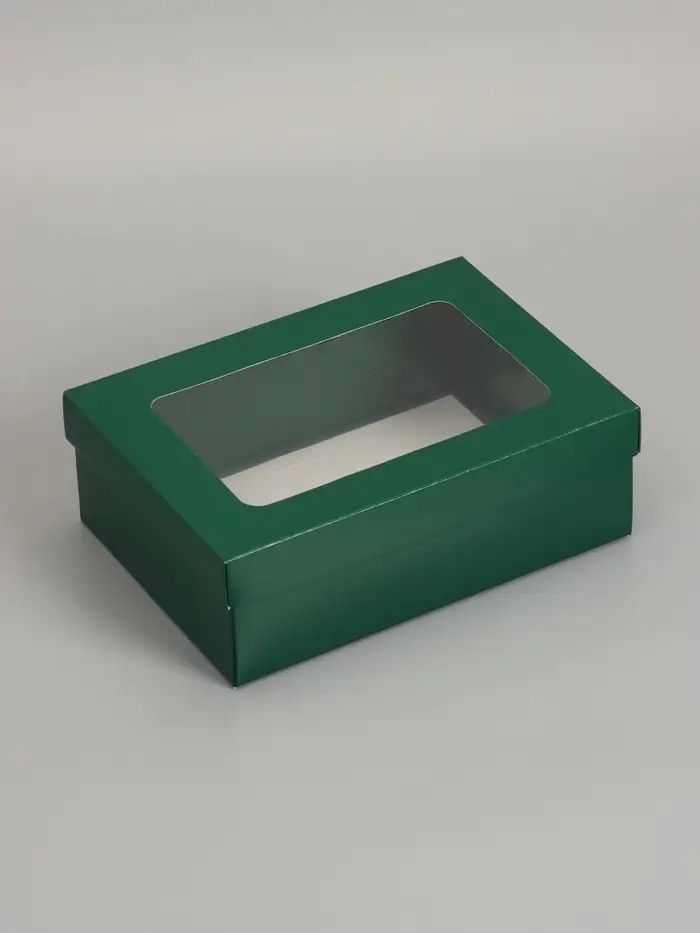 Коробка складная, крышка-дно, с окном, армейский зелёный, 24 х 17 х 8 см